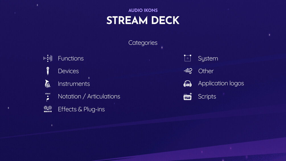 Audio Ikons - Stream Deck is a set of over 1700 icons optimized for the Stream Deck (any size). Perfect for composers, producers, sound designers and generally anyone who works with audio.