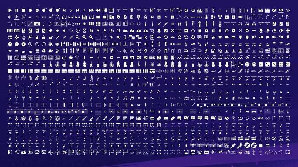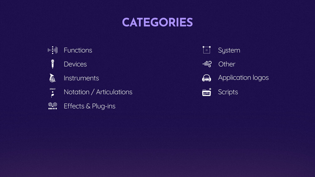 You will find icons of Functions, Devices, Instruments, Notation Symbols, Articulations and more.
